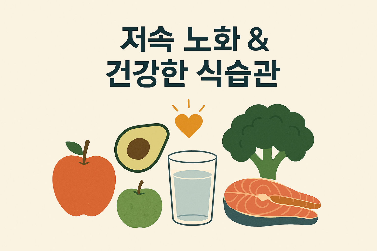 노화는 자연스러운 과정이지만, 생활 습관에 따라 그 속도를 늦출 수 있습니다. 이를 **'저속 노화'**라고 하며, 식습관이 가장 중요한 요소 중 하나입니다. 항산화 성분이 풍부한 음식과 균형 잡힌 영양 섭취를 통해 세포 손상을 줄이고 건강한 노화를 유도할 수 있습니다.